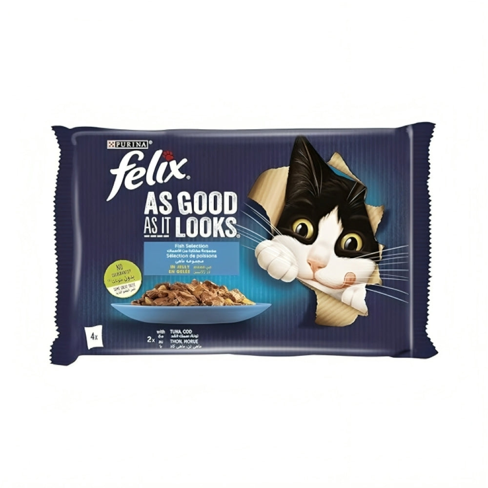 Do you have a question about this product?Indulge your adult cat with the delectable Purina Felix Country Side wet cat food, featuring the flavorsome combination of tuna and cod in jelly. Specially formulated for adult cats, these meals provide all the necessary proteins, vitamins, and minerals your feline companion needs. They fulfill 100% of your cat's daily requirements. This cat food offers a healthy and balanced diet, enriched with essential minerals and natural vitamins vital for fur health, preventing hair shedding, and promoting growth. It provides a high level of energy and natural proteins to support natural growth and boost the immune system. Purina Felix cat food is free from harmful substances such as artificial colors and flavors and is manufactured according to global quality standards.