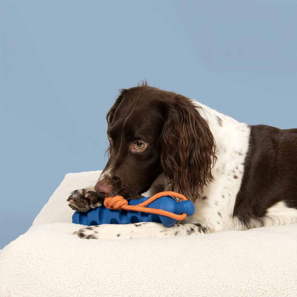 Do you have a question about this product?Coockoo Groovy Grip Dog Toy Blue and Orange is a durable rubber-and-rope toy designed for engaging tug and chew sessions. The intertwined design makes it easy to hold and encourages dental exercise during play. Built to withstand active use, it's perfect for interactive bonding and fun with your dog, both indoors and outdoors.