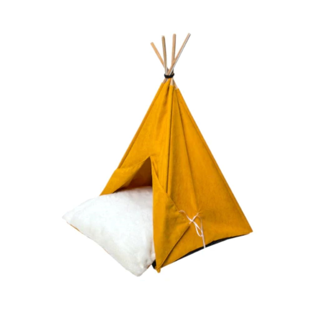 Tent bed. An elegant and distinctive bed for both cats and dogs from Feline Go to relax, sleep and hide when the pet desires, a bed made of soft and durable materials to keep your pet relaxed and warm when needed. A unique bed that gives pets a sense of security, comfort and relaxation. This pet bed is also easy to wash and maintain, so you don't have to worry about stains or odors. And whether you have a small cat or a large dog, we have the perfect size of beds to match. It is a guarantee of durability and strength because it is a bed made of high-quality materials that can withstand the daily use of pets. The bed is also easy to clean and dry, so you can keep it hygienic for your pets. The shape of the hut gives your pet the right space to hide and relax, and it is an elegant bed suitable for the taste of most cat and dog owners.
