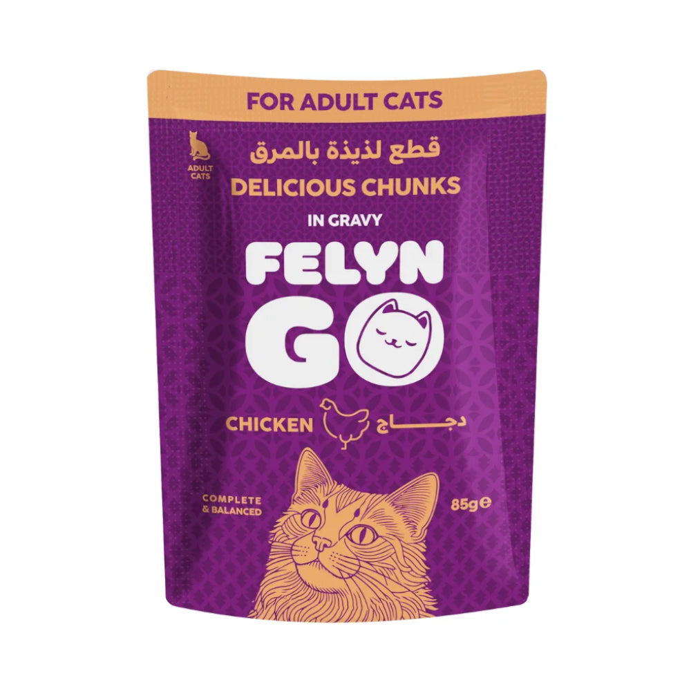 Do you have a question about this product?Felyn Go Wet Cat Food Chicken Chunks in Gravy. Felyn Go offers tender chicken chunks in savory gravy, crafted to support your cat’s appetite and hydration. Ideal as a standalone meal or wet topper.