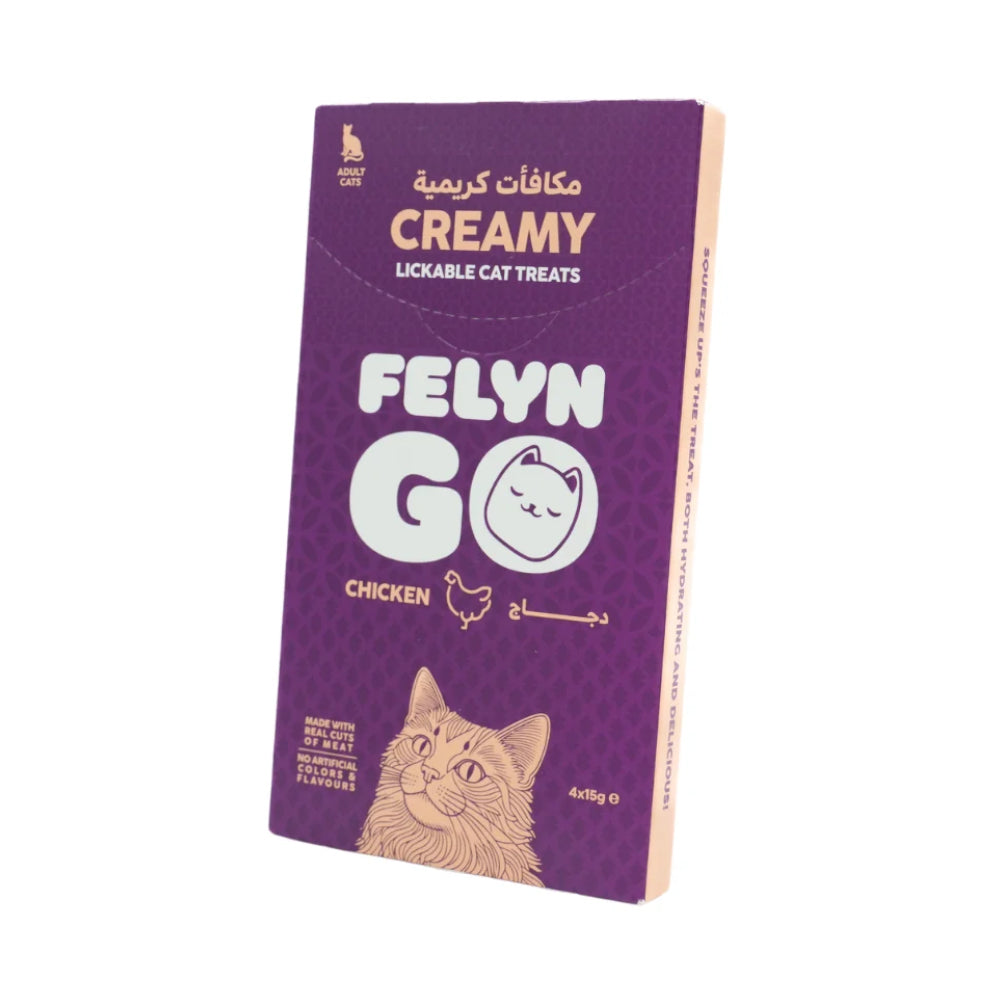 Do you have a question about this product?Felyn Go Creamy Cat Treats Chicken. Felyn Go delivers a creamy chicken-flavored treat that cats adore. This smooth-textured reward is ideal for hand feeding or topping food, making every moment of bonding even more special.