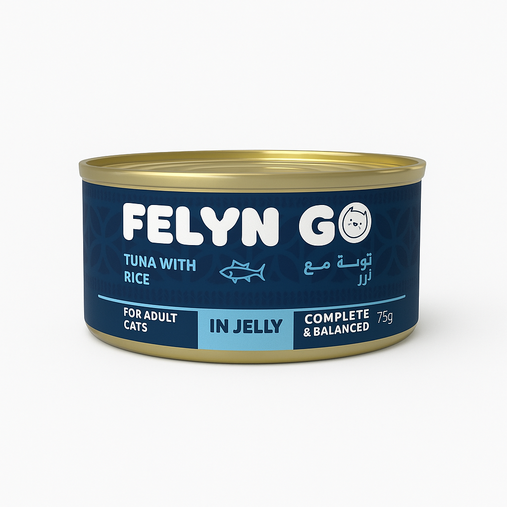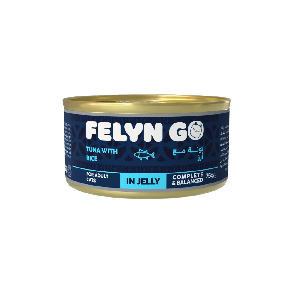 Do you have a question about this product?Felyn Go Wet Food for Adult Cats With Tuna and Chicken in Jelly. A balanced meal combining fresh tuna meat and white rice, enveloped in natural jelly that promotes hydration. This formula provides a rich source of protein and is easy to digest, making it suitable for cats of all ages.