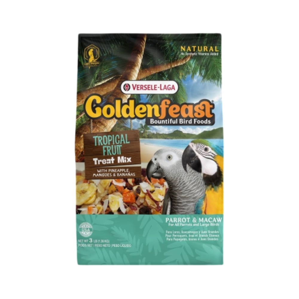Versel Laqa Golden Feast Mix Tropical Fruits Treats Parrots, Macaws and Large Birds This bird food contains a variety of natural ingredients, such as dried fruits, vegetables, nuts, legumes and seeds, these ingredients allow for the nutritional diversity required for birds, and this variety also provides the birds daily requirements of nutrients and increases its vitality and activity. Versal Laqa food is manufactured with the highest quality standards by bird breeding experts to suit domestic birds. Shop all bird supplies from Panda, the best pet and bird supplies store