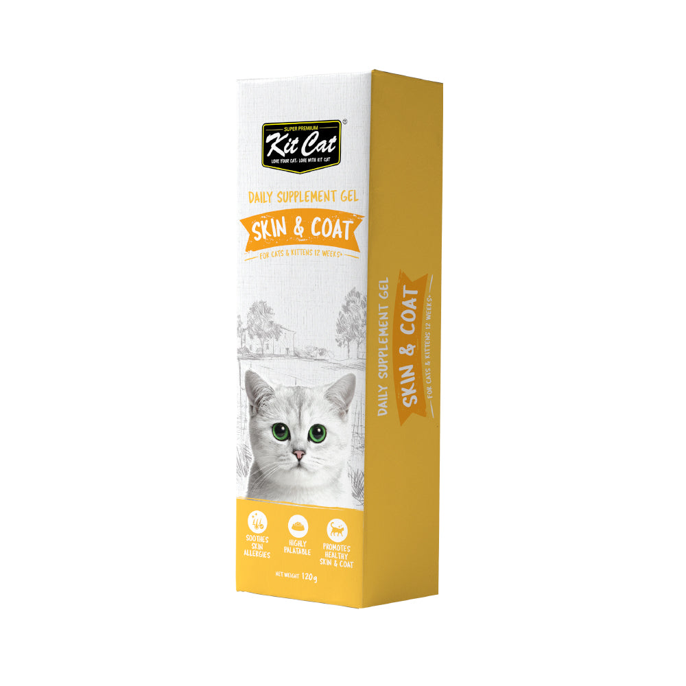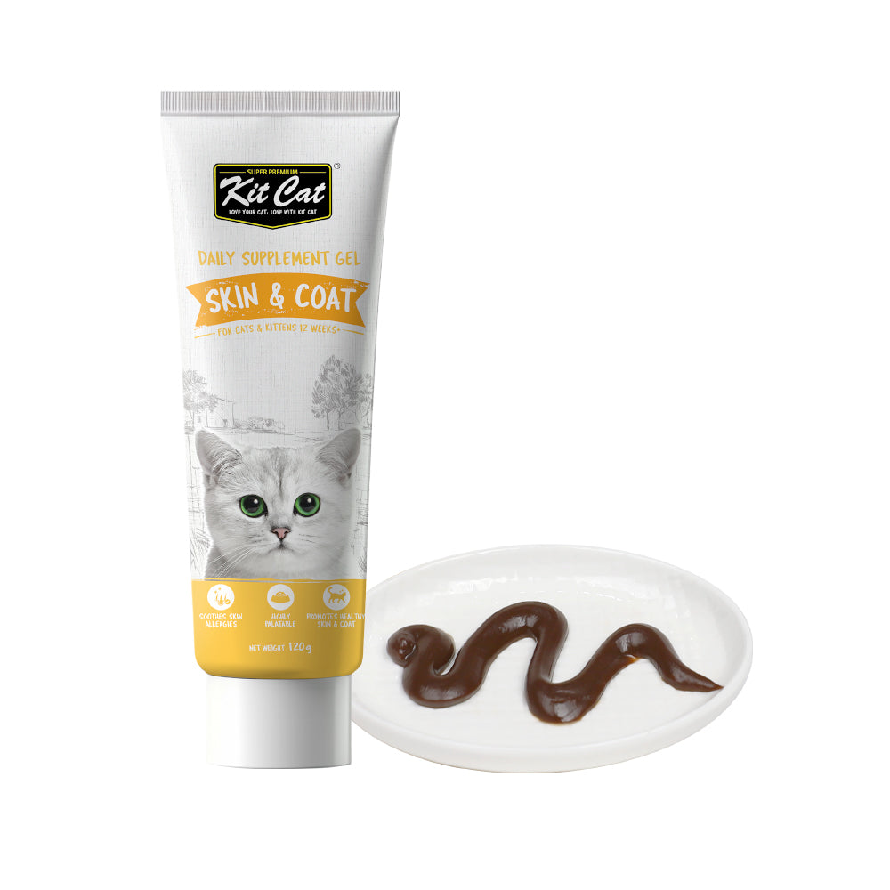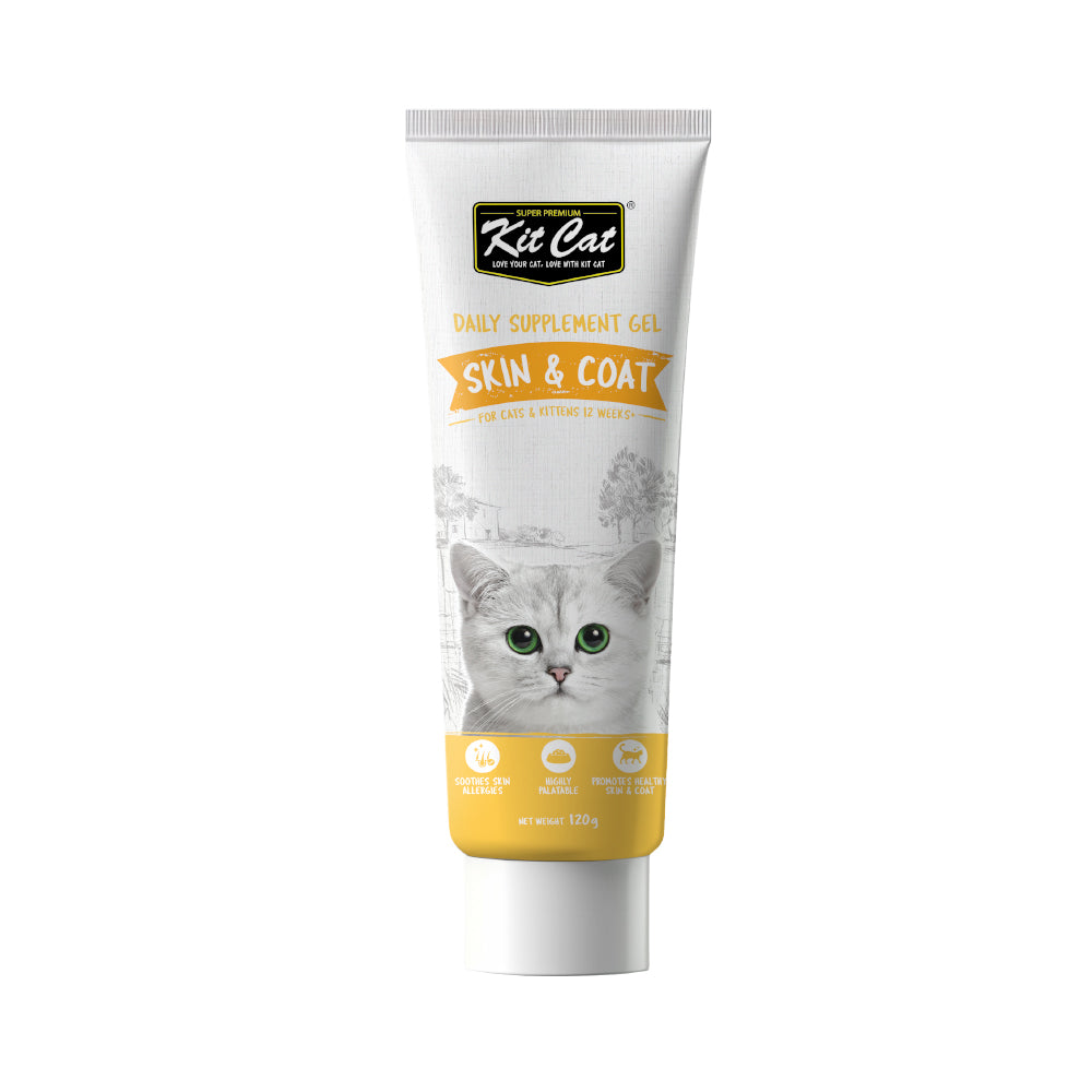 Do you have a question about this product?Kit Cat Gel Treat Support Skin & Coat For Cats and Kittens is a specially formulated gel supplement for cats and kittens aged 12 weeks and older. It contains a blend of essential vitamins and minerals that support healthy skin and promote a shiny coat, reducing shedding and improving overall appearance.