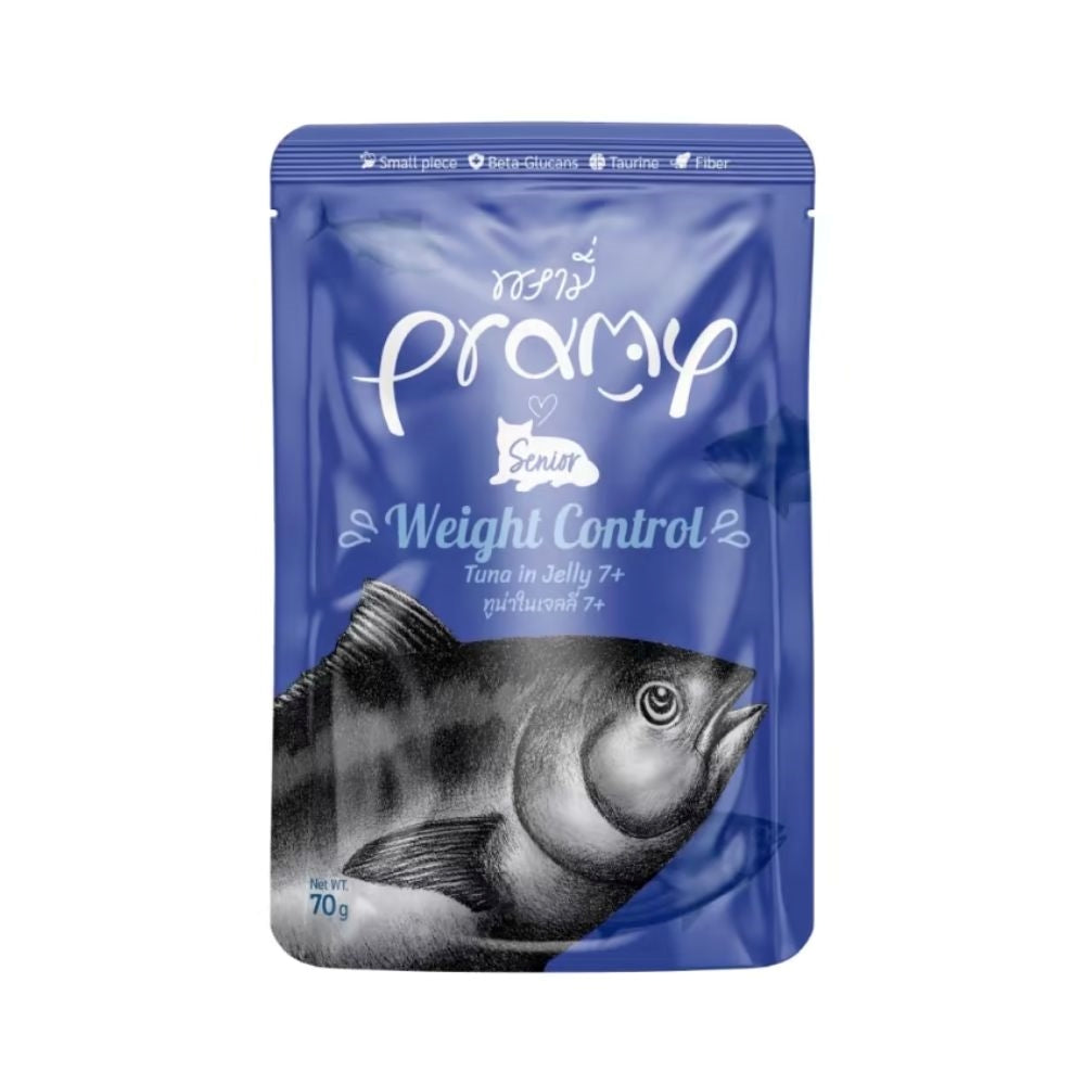 Do you have a question about this product?Pramy Weight Control Wet Food For Senior Cats Tuna in Jelly is specially formulated for senior cats aged 7 and above. This recipe features a high-protein blend of tuna with a low-fat content to help maintain a healthy weight. It also includes essential vitamins and minerals to support immune and digestive health in older cats.