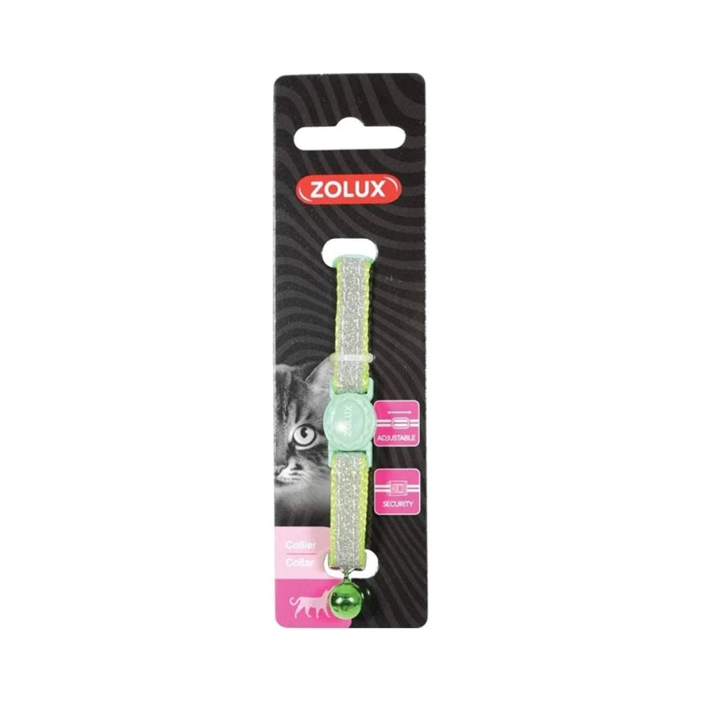 Do you have a question about this product?طوق عنق للقطط باللون اخضر لماع بشكل جميل ومصنوع من النايلون مع جرس ، من ماركة زولكس الشهيرة، يمتاز بمظهر رائع ليزين قططك ويزيدها جمالا ، مُصنع من مواد آمنة على صحة القطط المنزلية والحيوانات الأليفة الأخرى، ويمكنك استخدامه بكل أمان وسهولة. تسوق كافة مستلزمات القطط والكلاب من باندا أفضل متجر حيوانات أليفة.