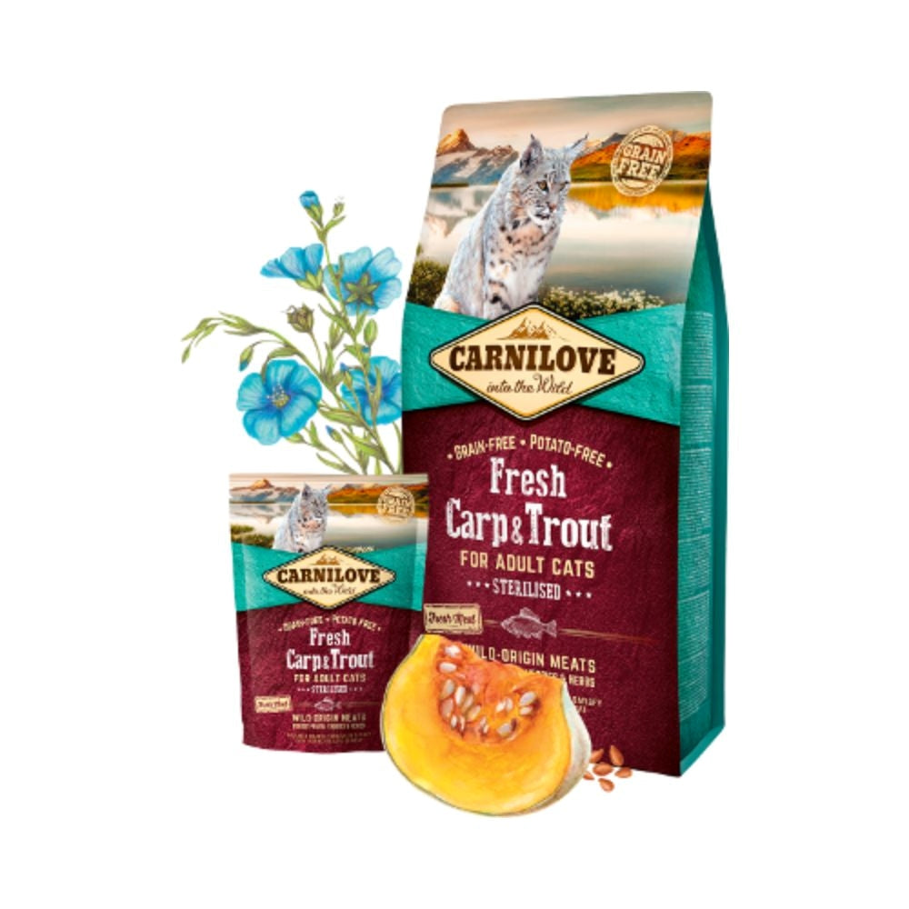 سمك شبوط طازج منزوع العظم (%25)، سمك سلمون مرقط مجفف (20%)، لحم سلمون طازج منزوع العظم (14%)، سلمون مجفف (14%)، يقطين، دهون دجاج (محفوظة بالتوكوفيرول، 4%)، حمص، فاصوليا، كبد دجاج (%3)، زيت سلمون (%2)، تفاح ، جزر ، بذور الكتان، قشور قشريات مهدرجة (مصدر للجليكوزامين، 0.026%)، مستخلص غضروف (مصدر كوندرويتين، 0.016%)، خميرة البيرة (مصدر لقليل سكاريد المنان ، 0.015٪)، جذر الهندباء (مصدر لقليل سكاريد الفركتوزي، 0.012٪) ، مسحوق اليوكا شيديجيرا (%0.01) ، طحالب (%0.01) ، بذور القطونة (سيلليوم) (%0.01) ، زعتر (%0.01) ، إكليل (%0.01) ، نبتة الأوريغانو (مردقوش) (%0.01) ، توت بري (%0.0008)، عنب بري (%0.0008) ، توت (%0.0008). غاسول (%0.0008)، لب الزنجبيل (%0.0008)، مريمية (Salvia Officinalis, 0.0008%)