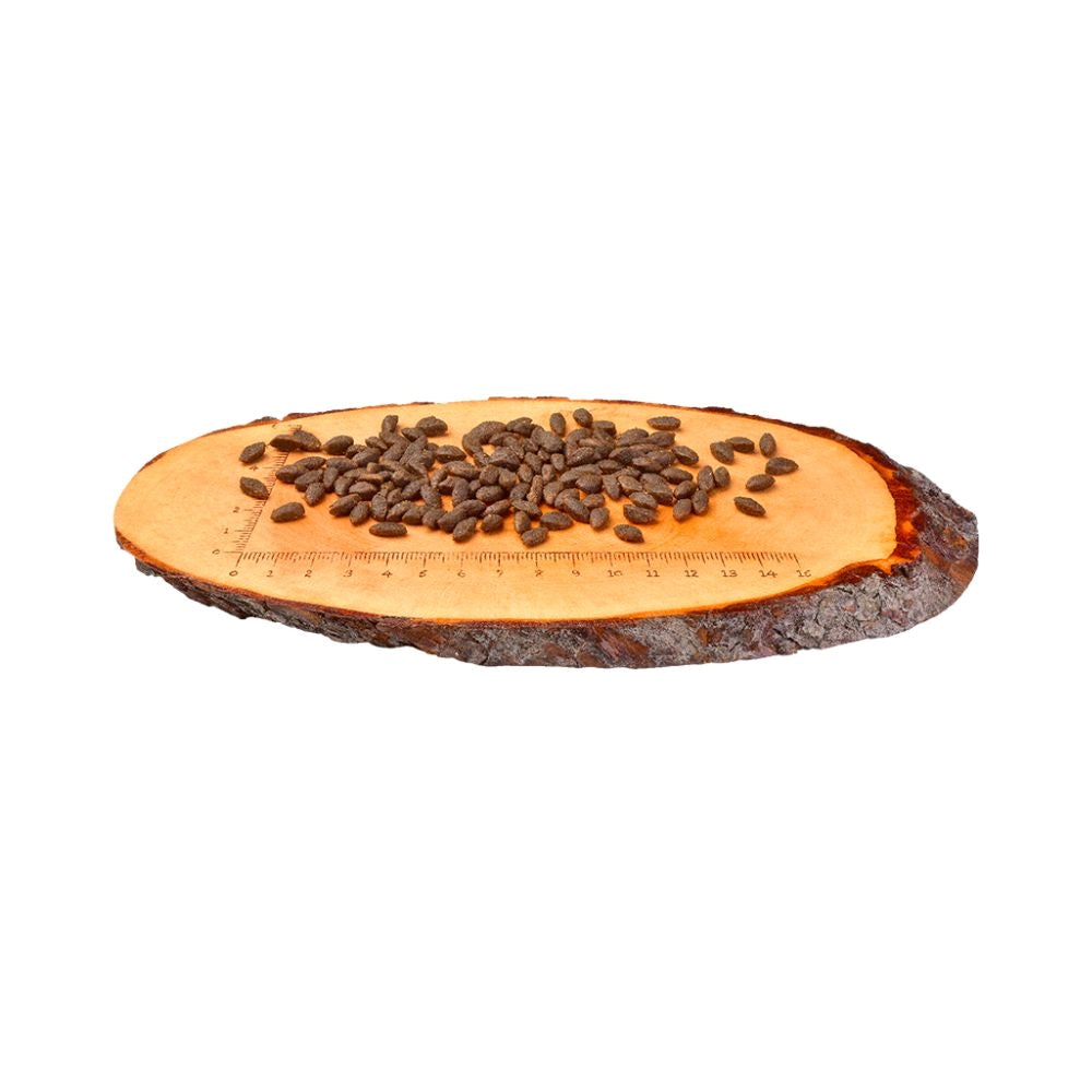وجبة لحم السلمون (%30)، فاصوليا صفراء (17%)، سلمون منزوع العظم (16%)، وجبة سمك الرنجة (14%)، دهون دجاج (محفوظة بالتوكوفيرول، 9%)، كبد دجاج (%3)، زيت سلمون (3%)، نشاء التابيوكا (%2)، تفاح (%2)، جزر (%1)، بذور الكتان (1%)، حمص (%1)، قشور قشريات مهدرجة (مصدر للجليكوزامين، 0.026%)، مستخلص غضروف (مصدر كوندرويتين، 0.016%)، خميرة البيرة (مصدر لقليل سكاريد المنان ، 0.016٪)، جذر الهندباء (مصدر لقليل سكاريد الفركتوزي، 0.012٪) ، مسحوق اليوكا شيديجيرا (%0.01) ، طحالب (%0.01) ، بذور القطونة (سيلليوم) (%0.01) ، زعتر (%0.01) ، إكليل (%0.01) ، نبتة الأوريغانو (ردقوش) (%0.01) ، توت بري (%0.0008)، عنب بري (%0.0008) ، توت (%0.0008). التحليل الكيميائي:,البروتين الخام 36.0%,الدهن الخام 17.0%,الرطوبة 10.0%,الرماد الخام 8.8%,الألياف الخام 2.0%,كالسيوم 1.3%,فسفور 1.0%,صوديوم 0.6%,مغنيسيوم 0.08%,محتوى الطاقة ,الطاقة التمثيلية / كجم 4050 كيلوكالوري,دهون اوميغا ,أوميغا 3 0.34 %,أوميغا 6 2.35 % \n \nالمضافات الغذائية لكل كيلوجرام:,فيتامين A (E672) 23.000 وحدة دولية,فيتامين (E671) D3 940 وحدة دولية,فيتامين E 650 ميليجرام,فيتامين C (E300) 300 ميليجرام,تورين 2400 ميليجرام,كلورايد الكولين 2200 ميليجرام,ل - كرنيتين 65 ميليجرام,نياسين 45 ميليجرام,بيوتين 1.8 ميليجرام,زنك (E6) 150ميليجرام,منغنيز (E5) 55 ميليجرام,حديد (E1) 48 ميليجرام,يود (E2) 3.8 ميليجرام,نحاس (E4) 11 ميليجرام,سيلينيوم (E8) 0.23 ميليجرام,د-ل-ميثونين (3.1.1) 14 ميليجرام,أرجينين (3c3.6.1) 12 ميليجرام,ل-ليسين (3.2.3) 10 ميليجرام