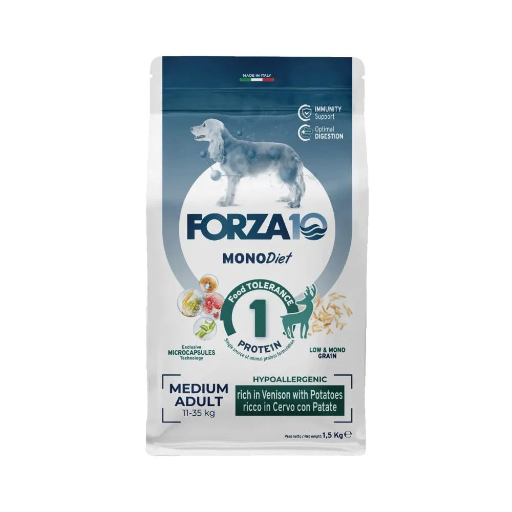 عندك استفسار عن هالمنتج؟فورزا 10 طعام جاف للكلاب البالغة من اللسلالات المتوسطة بنكهة لحم الغزال وجبة متكاملة تجمع بين لحم الغزال والبطاطس لتلبية احتياجات الكلاب البالغة متوسطة الحجم. تم تحضير هذه الوصفة من مكونات طبيعية تعزز صحة الهضم وتساهم في تعزيز صحة الجلد والفراء.