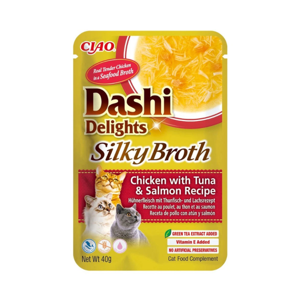 عندك استفسار عن هالمنتج؟اينابا داشي ديلايتس طعام رطب تكميلي للقطط بنكهة الدجاج والتونة مع السالمون في المرق وجبة تكميلية تجمع بين قطع الدجاج مع التونة والسالمون في مرق ناعم وخفيف، مصمم لتوفير الترطيب والنكهة دون أي إضافات صناعية. مثالي للقطط التي تعاني من قلة شرب الماء أو صعوبة في تناول الطعام الجاف، ويمكن تقديمه بمفرده أو مع الوجبات اليومية. خالٍ من الحبوب والمواد الحافظة ويحتوي على مضادات أكسدة طبيعية.