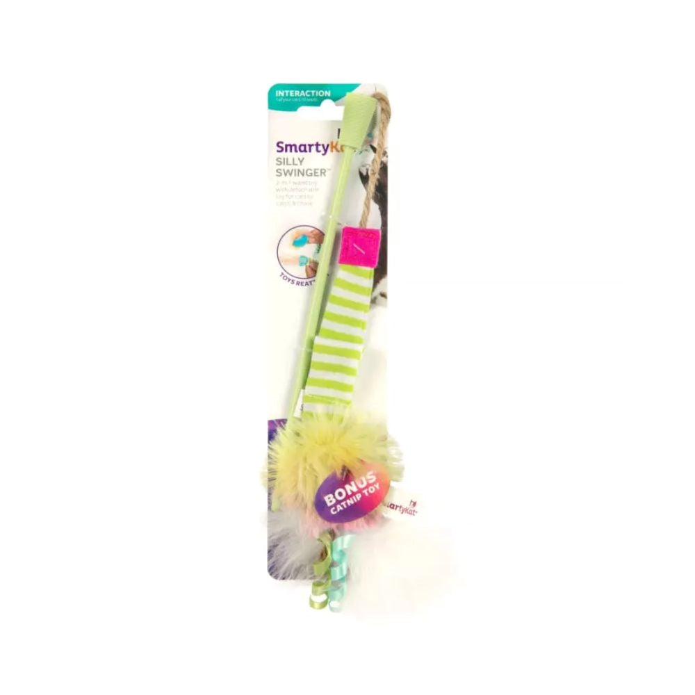 عندك استفسار عن هالمنتج؟لا تدع الخمول يصيب قططك الرائعة ،فالقطط كائنات تحب اللعب والمرح، وألعاب القطط توفر لها النشاط والحيوية، وتلبي غرائزها الطبيعية بالمطاردة والصيد ، سمارتي كات لعبة سنارة للقطط مع كاتنيب، لعبة قطط ممتعة ومسلية تحفز القطط على المطاردة والتفاعل وتزيد من نشاط القطط المنزلية التي قد تعاني من قلة الحركة . تسوق كافة مستلزمات القطط والكلاب من باندا افضل متجر حيوانات أليفة.