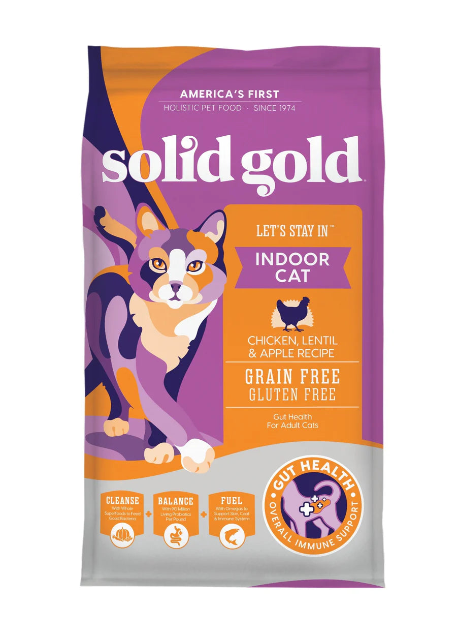 عندك استفسار عن هالمنتج؟سوليد جولد ليتس ستاي إن طعام جاف للقطط البالغة المنزلية بنكهة الدجاج والعدس مع التفاح المصمم خصيصًا للقطط المنزلية. هذه الوصفة الخالية من الحبوب والجلوتين تحتوي على دجاج طبيعي من مصادر مستدامة، وعدس غني بالألياف لدعم الهضم الصحي، وتفاح لتحسين صحة الجهاز الهضمي. تم تعزيز الوصفة بمزيج مميز من السوبرفودز لدعم مناعة القطط وتعزيز صحتها العامة.