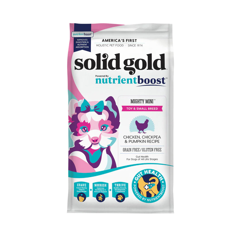 عندك استفسار عن هالمنتج؟سوليد جولد مايتي ميني طعام جاف للكلاب بنكهة الدجاج مع الحمص والقرع مصمم خصيصًا للكلاب الصغيرة، حيث يجمع بين الدجاج اللذيذ، الحمص، والقرع. هذه التركيبة مدعمة بتقنية "نيوترينت بوست" التي توفر بروتينات، أحماض أمينية، وأجسام مضادة لدعم الهضم وامتصاص العناصر الغذائية.